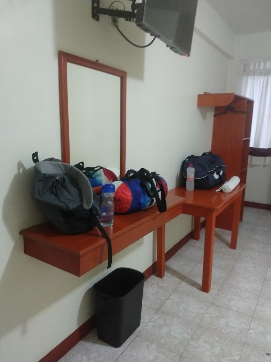 Hotel económico para pasar la noche o de paso , habitación sencilla para dos personas en 450 la noche, dan toallas, la habitación estaba bien tiene televisión y películas,sábanas limpias y en general la habitación y el baño limpio fue una estancia agradable